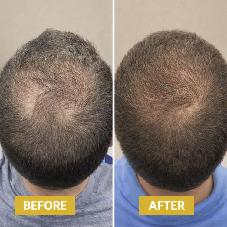 Most people notice scalp comfort + less breakage first. Fuller-looking results typically build over 6–8+ weeks with consistent use.